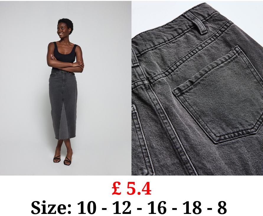 £ 5.4 Black Contrast Split Raw Hem Denim Midaxi Skirt