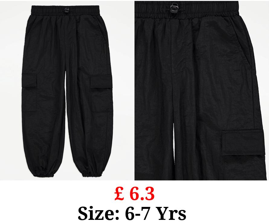 £ 6.3 Black Parachute Trousers