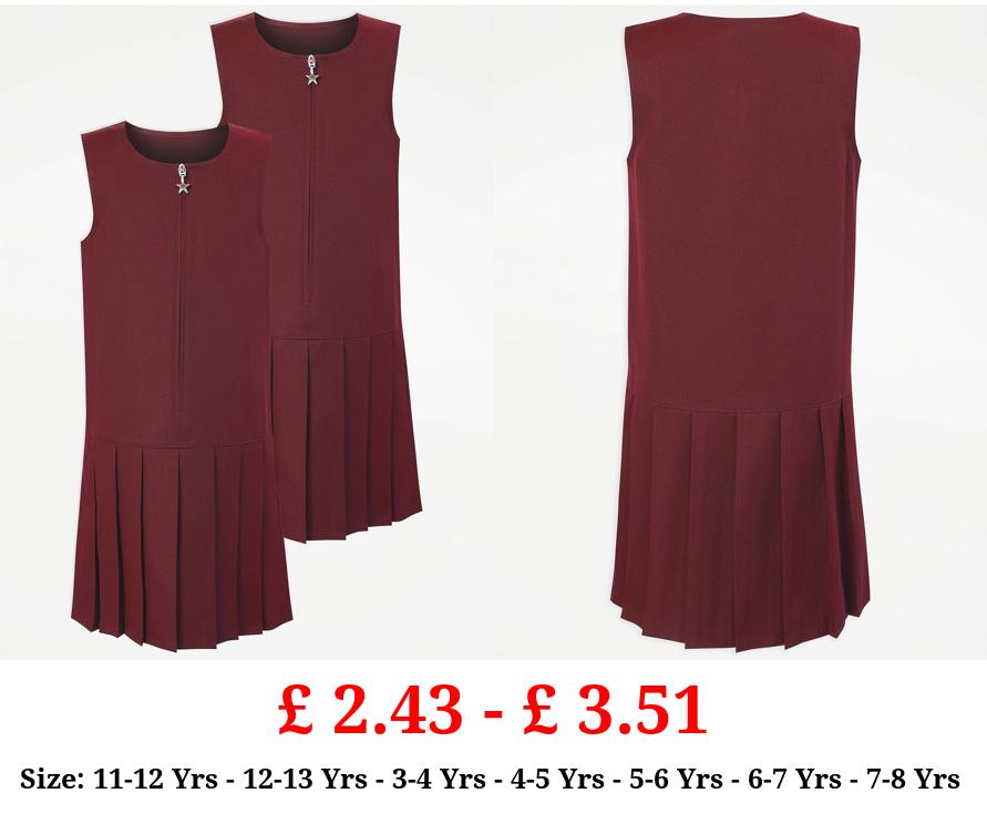 £ 2.43 - £ 3.51 Burgundy Girls Drop Waist School Pinafore Dress 2 Pack