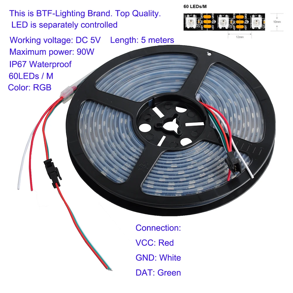 ZCvuXmQjHere you can buy 5m WS2812B RGB LED Strip Light IP67 Waterproof 60LEDs/m Pixel Addressable Individual Dream Magic Color Black PCB for Christmas with free delivery to your post office.