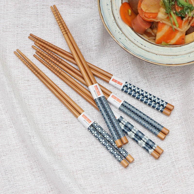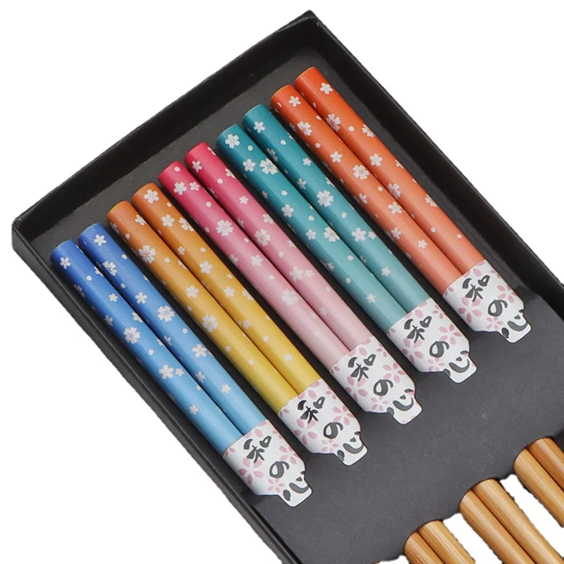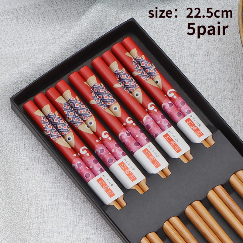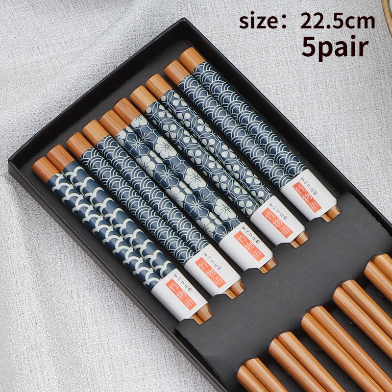 5pair New Household Bamboo Chopsticks Creative Printing Chopsticks Set Environmental Protection Moisture-proof Gift Tableware - Купить с бесплатной доставкой