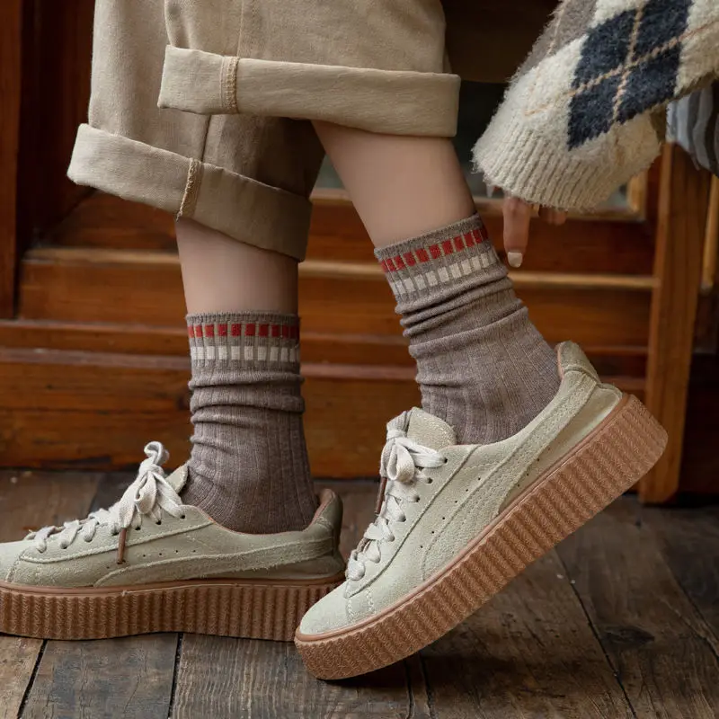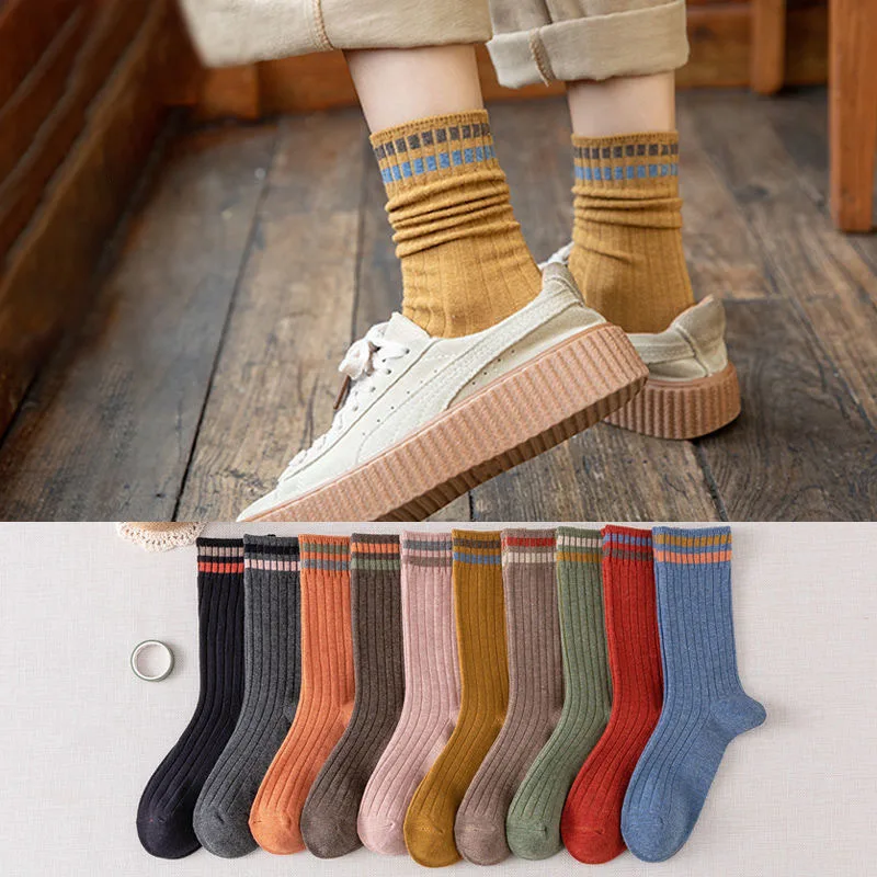 "5pair/Lot Women Long Socks School Spring Autumn Knitting Striped Polyester Cotton Middle Tube Loose Sock Breathable Calcetines" * Buy Now Just For 11$