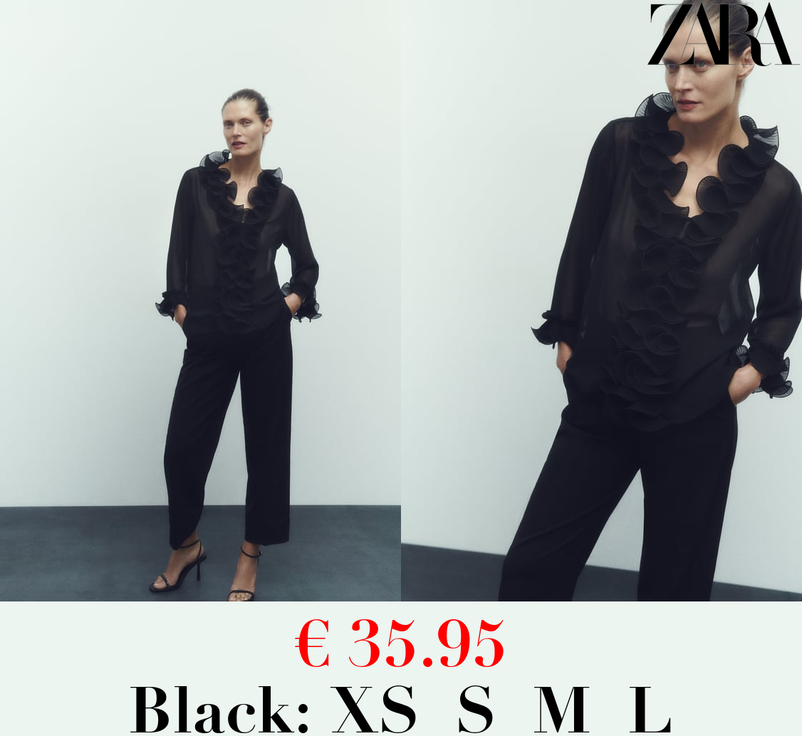 € 35.95 SEMI-SHEER BLOUSE WITH PLEATED RUFFLE TRIMS