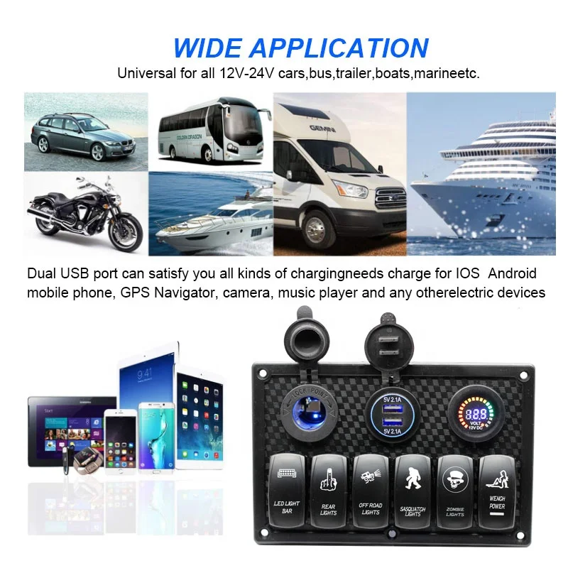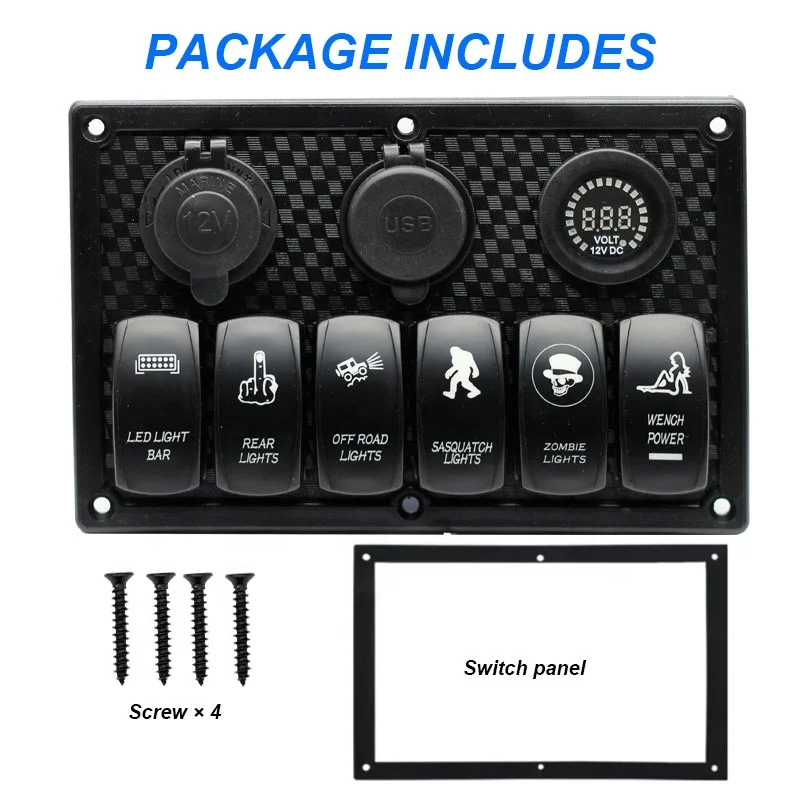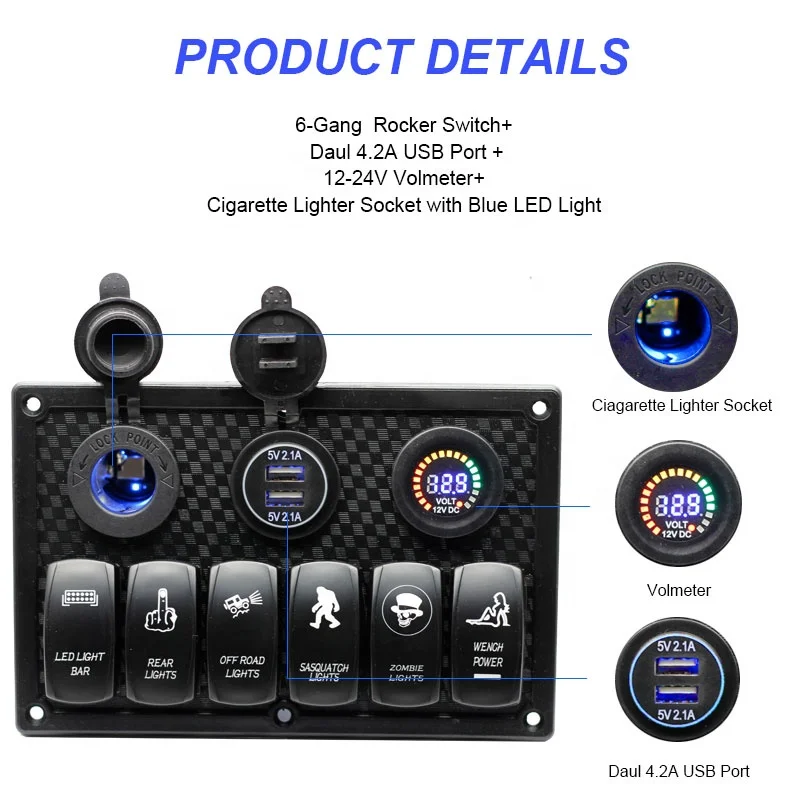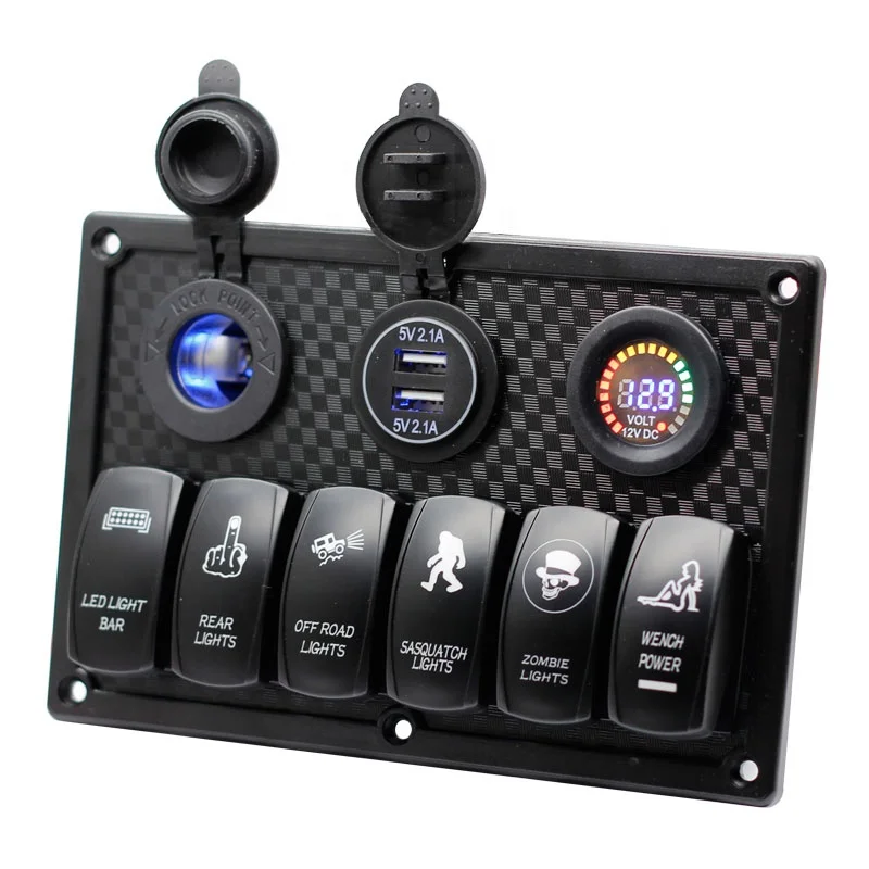 6 Gang Rocker Switch Panel ON Off Laser LED Light Switch with Dual USB Digital Voltmeter Cigarette Lighter Socket - Купить с бесплатной доставкой
