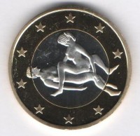 В дань памяти о Римской империи и о самой древнейшей профессии, европейцы выпустили евро монеты подобного образца. Изготавливаются они в Польше.