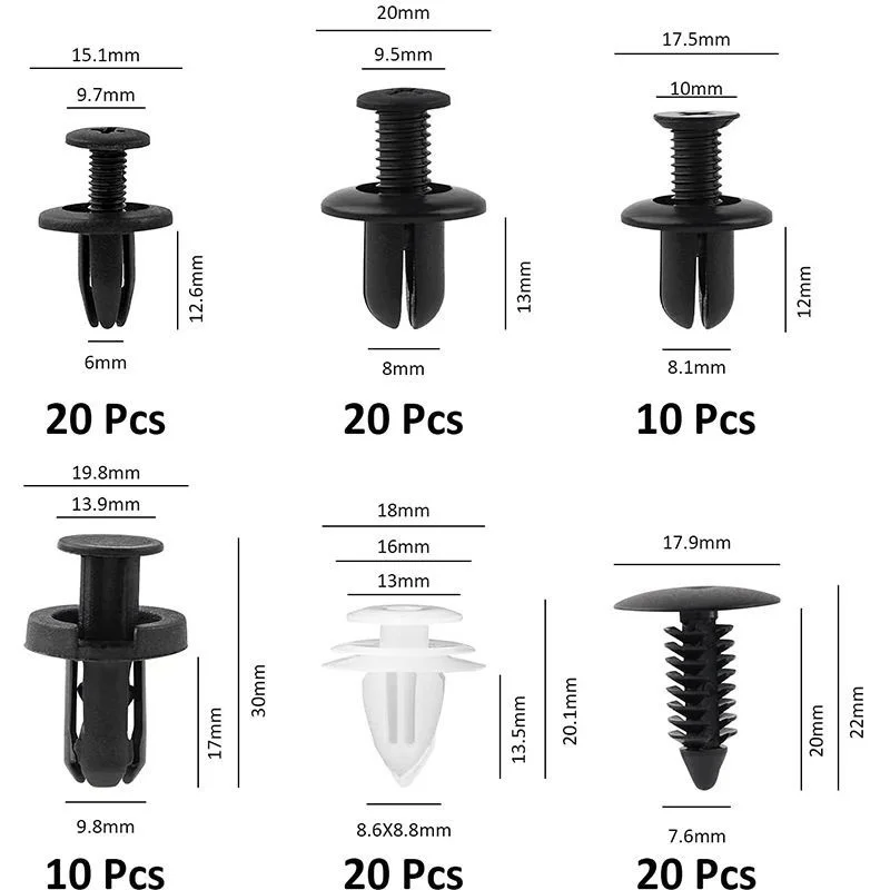 «6 Sizes Auto Fastener Clip Plastic Clips Fasten Bumper Door Trim Fitting Disassembly Tool Remove Retain Rivets For Cars 100pcs» по лучшей цене на рынке! Всего за 3$ (285рублей)