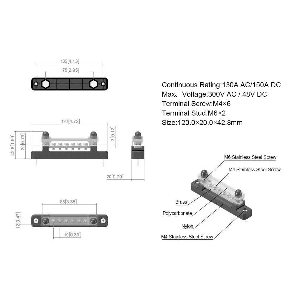 YuHttVuULooked for 6 Terminals Bus Bar Power Distribution Block 150A 48V with Cover M6 Terminal Studs for Car Boat Marine Trucks RV Vehicle Parts for a long time, but could not find it? Bring to your attention 6 Terminals Bus Bar Power Distribution Block 150A 48V with Cover M6 Terminal Studs for Car Boat Marine Trucks RV Vehicle Parts with the best price!