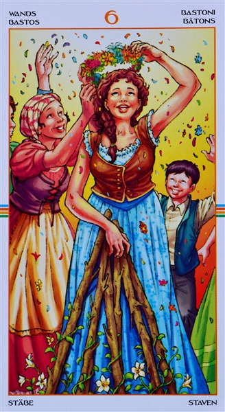Другие названия аркана: шестерка посохов, шестерка скипетров . Шестерка Жезлов — это карта победы, успеха, славы и «всенародного признания», а от сюда и радости, удовлетворения .