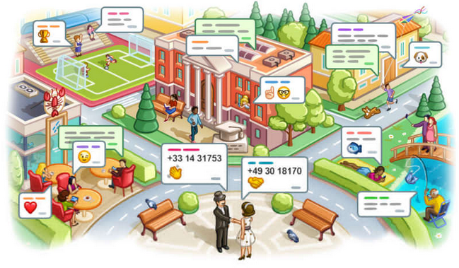 Uma nova seção Adicionar Pessoas Próximas foi criada para trocar números rapidamente com pessoas próximas a você. A nova seção também permite criar chats públicos baseados em localização.