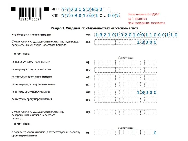 6 ндфл 2 квартал 2025г