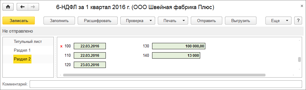 6 ндфл в 1с зарплата