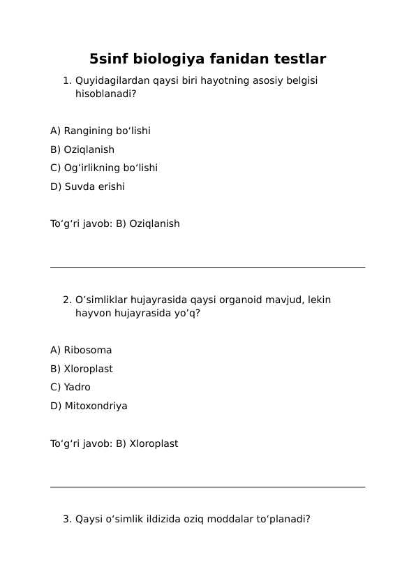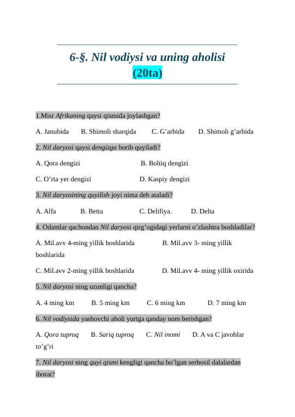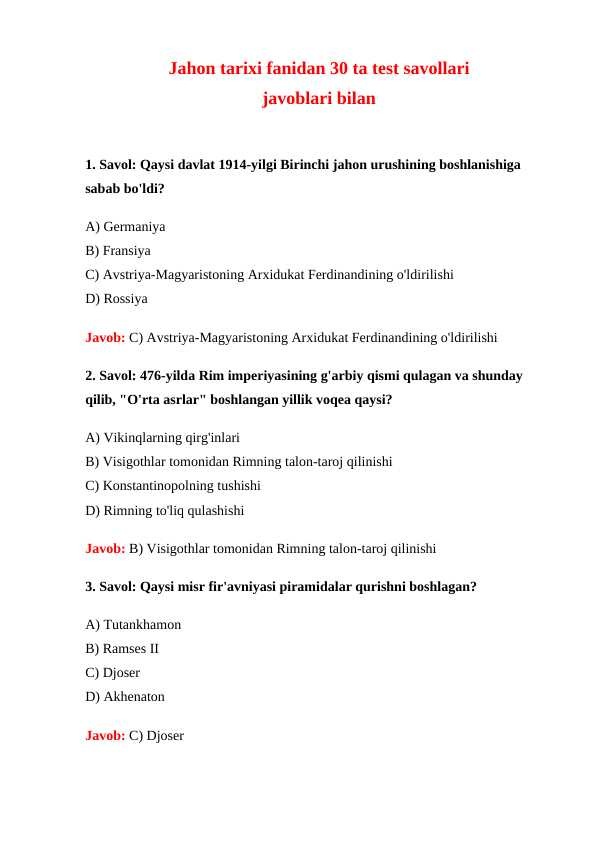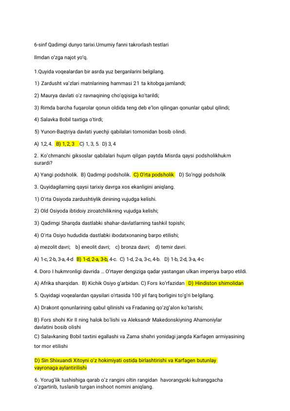 6 sinf tarix fanidan test