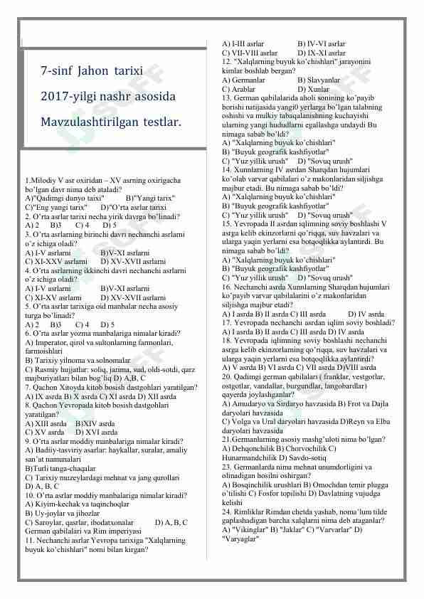 6 sinf tarix fanidan test 135 фотографий