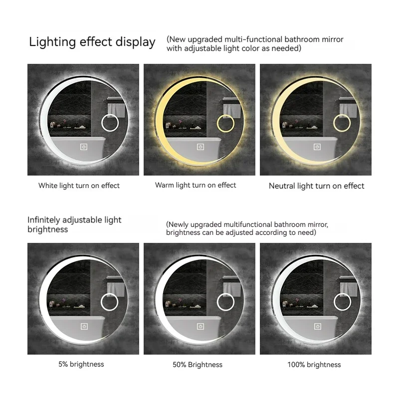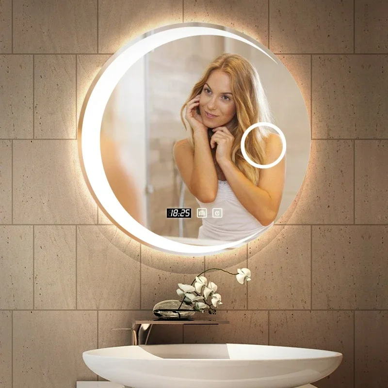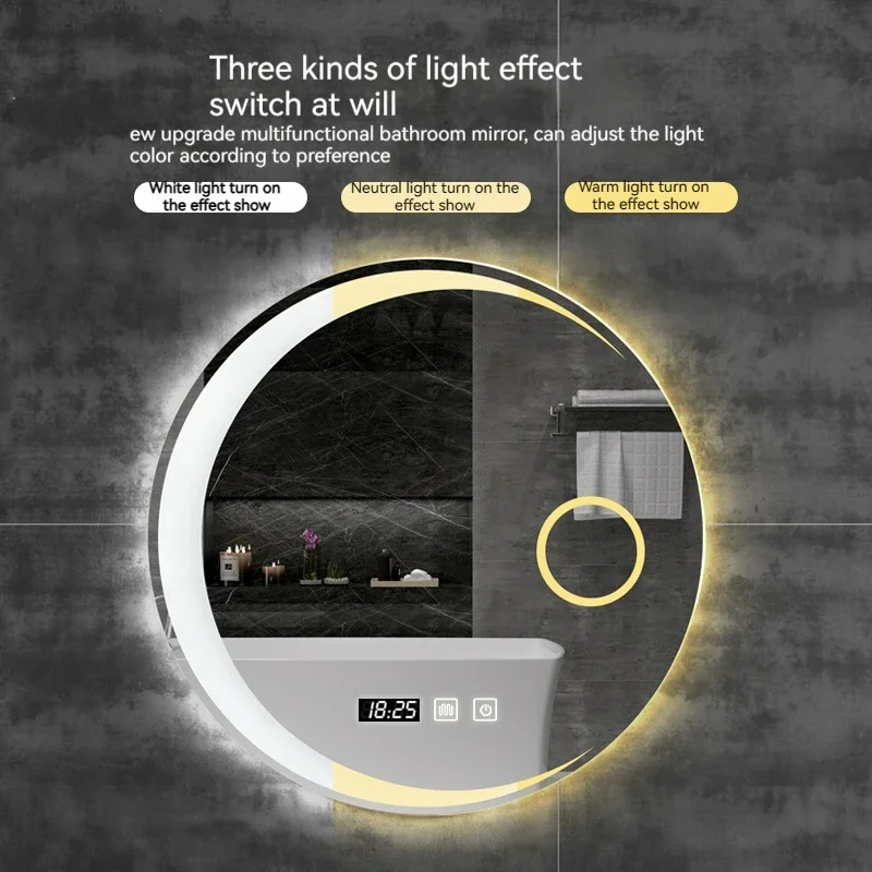 rcJsQqlCHere you can buy 60 CM Round Smart Hotel Bedroom Defogging Decorative Mirror 3 Color Adjustable Backlight With LED Bathroom Mirror with free delivery to your post office.