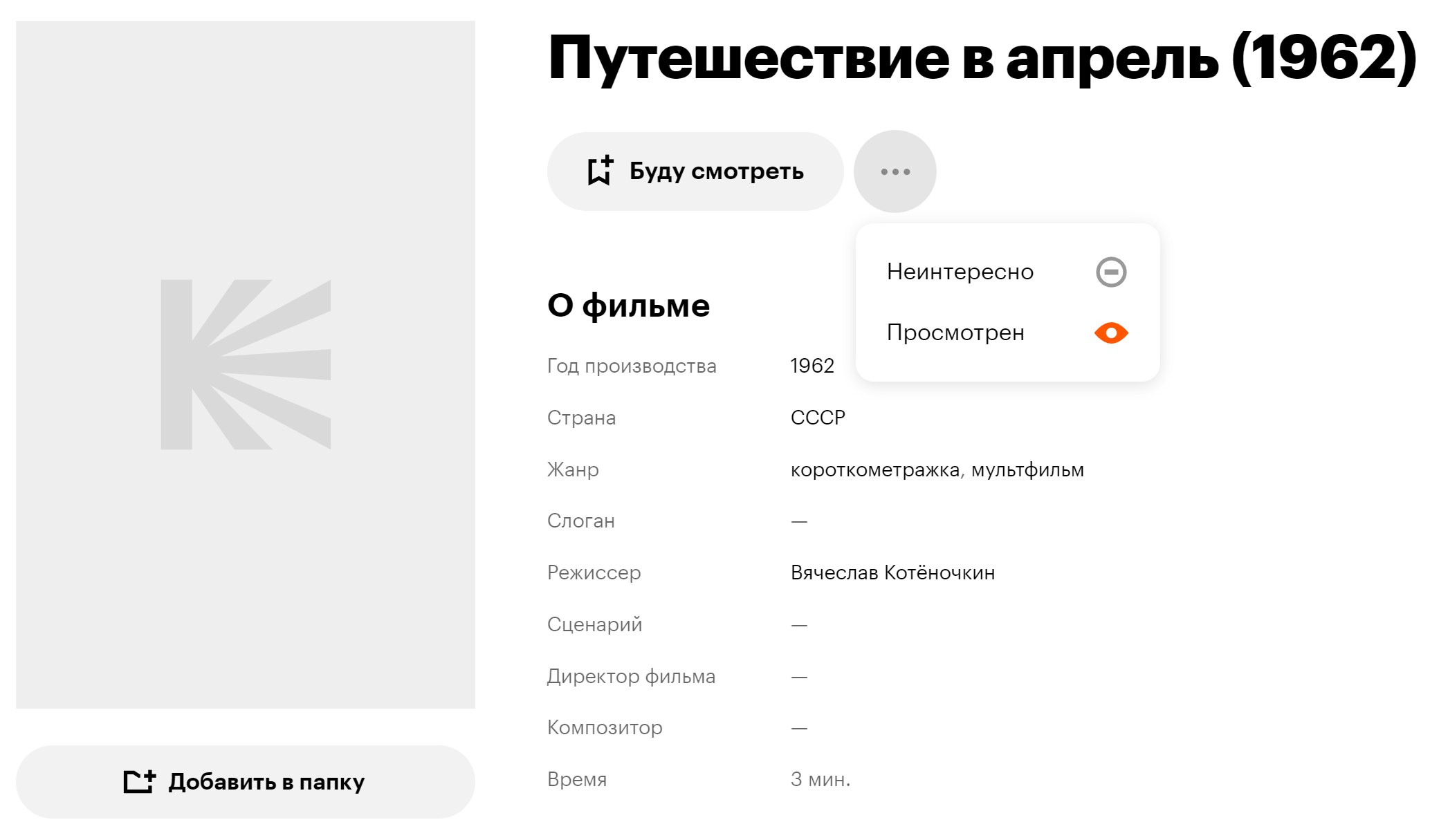 Или вот такой угол: а если я ознакомился с 1 серией Очень Большого Сериала, и, не найдя в себе зрительского отклика, не смотрел дальше? Как считать, просмотрено или нет?