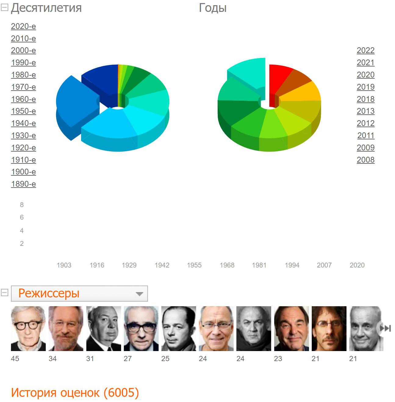 Интересно пофантазировать, когда будет юбилей: в неделю в среднем по 10 наименований, в год порядка 500 для ровного счета. В таком режиме живу уже лет 8, если не 10. Значит, 10'000 фильмов смогу набрать уже году в 2031-м.