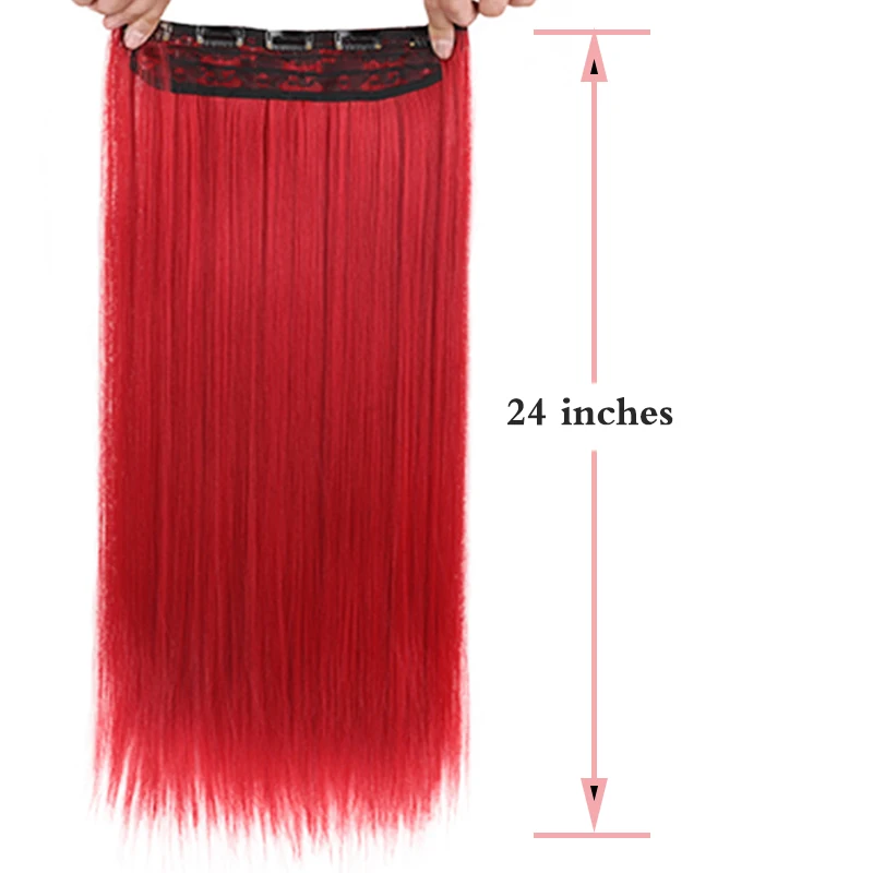 "60CM Synthetic Natural Hair Extensions Clip-on Hair Red Straight Clip In Extensions Artificial Cabello Hairpiece" * Buy Now Just For 4$