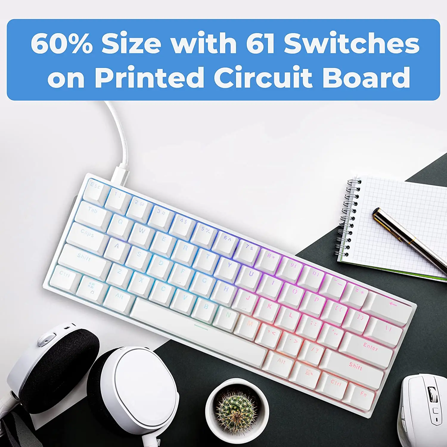 "61keyboard Hot Swappable Keyboard - 60 Percent Hot Swap Keyboard - 5 pin Hotswap Keyboard- DIY Custom Keyboard" * Buy Now Just For 32$