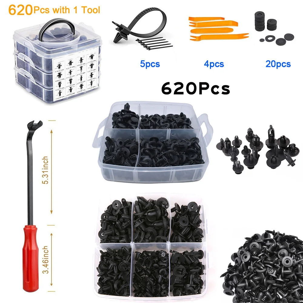 620Pcs/Set Auto Fastener Clips Car Body Push Retainer Pin Rivet Bumper Door Trim Panel Retainer Fastener Kit Car Accessories - Купить с бесплатной доставкой