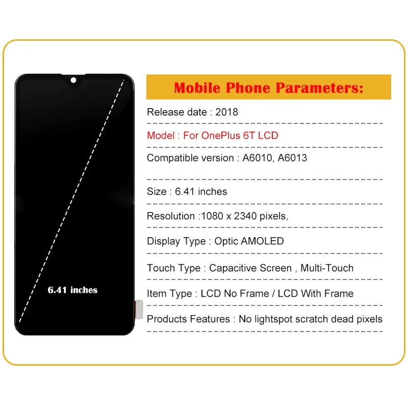 pcYzXAbetHere you can buy 6.41" Original Lcd For OnePlus 6T A6010 LCD Display Touch Screen For One Plus 6T with Fringerprint Replacement Digitizer Assembl with free delivery to your post office.