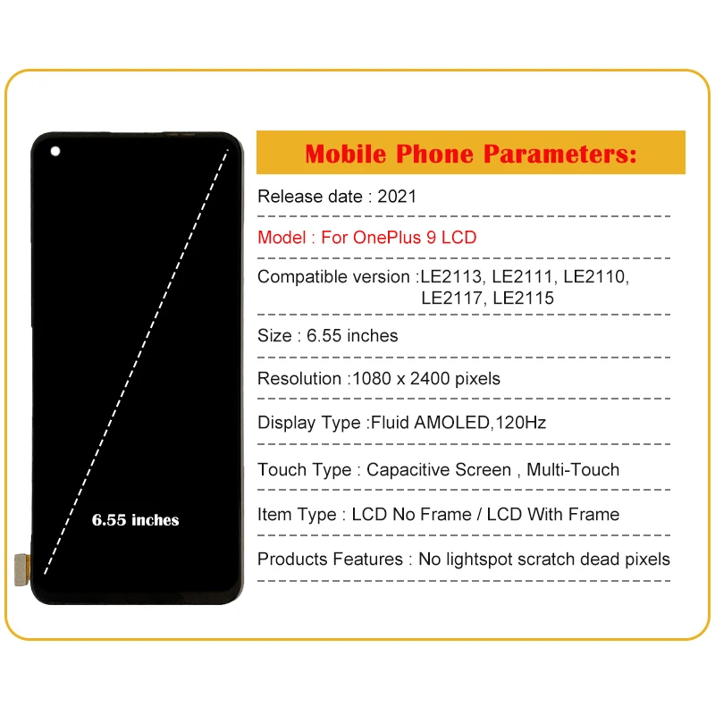 oJQSxSrNlHere you can buy 6.55"For OnePlus 9 LE2113 LE2111 LE2110 LCD Display Digitizer Screen Repair Assembly Replacement With Frame with free delivery to your post office.
