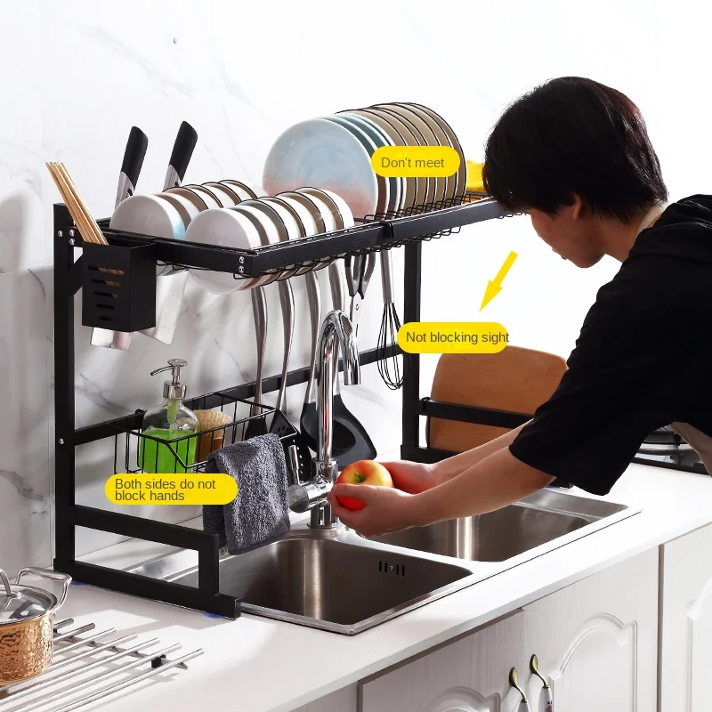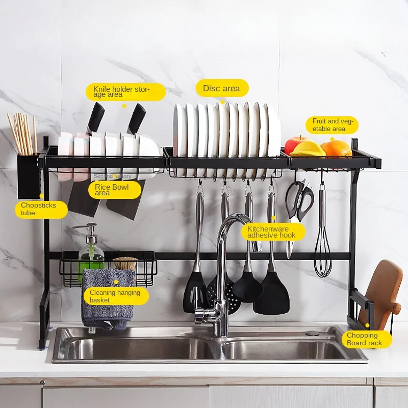 ocxPiSYOHere you can buy 65cm Metal Dish Rack Black Kitchen Sink Drain Rack Cutter Bowl Tray Countertop Shelving Can Be Loaded and Unloaded Adjustment with free delivery to your post office.
