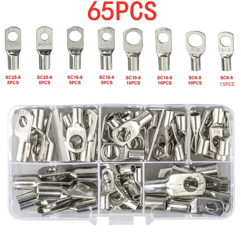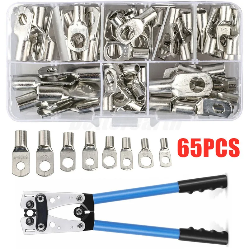 "65pcs Car Auto Copper Ring Terminal Wire Crimp Connector Bare Cable Battery Terminals Soldered Connectors HX-50B Plier Kit" * Buy Now Just For 10$