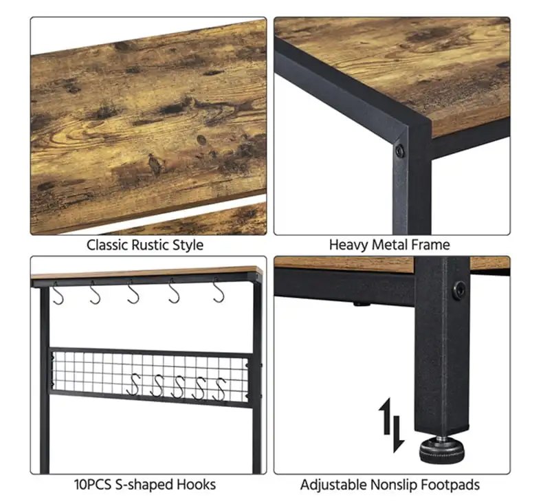 bTabluXHeMHere you can buy 67" Wooden Kitchen Bakers Rack with 4 Storage Shelves & 10 Hooks Rustic Brown Large Capacity Storage with free delivery to your post office.