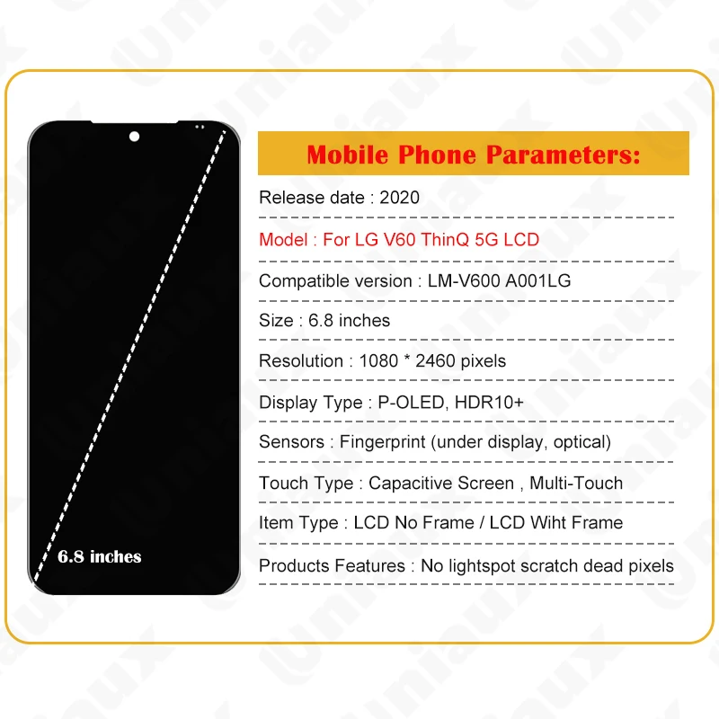 YUfrQNNzcfДолго искали 6.8" Original AMOLED For LG V60 ThinQ 5G V600 LCD Display With Frame Touch Screen Digitizer For LG V60 Screen With Battery Cover, но не могли найти? Предоставляем вашему вниманию 6.8" Original AMOLED For LG V60 ThinQ 5G V600 LCD Display With Frame Touch Screen Digitizer For LG V60 Screen With Battery Cover по лучшей цене на рынке!