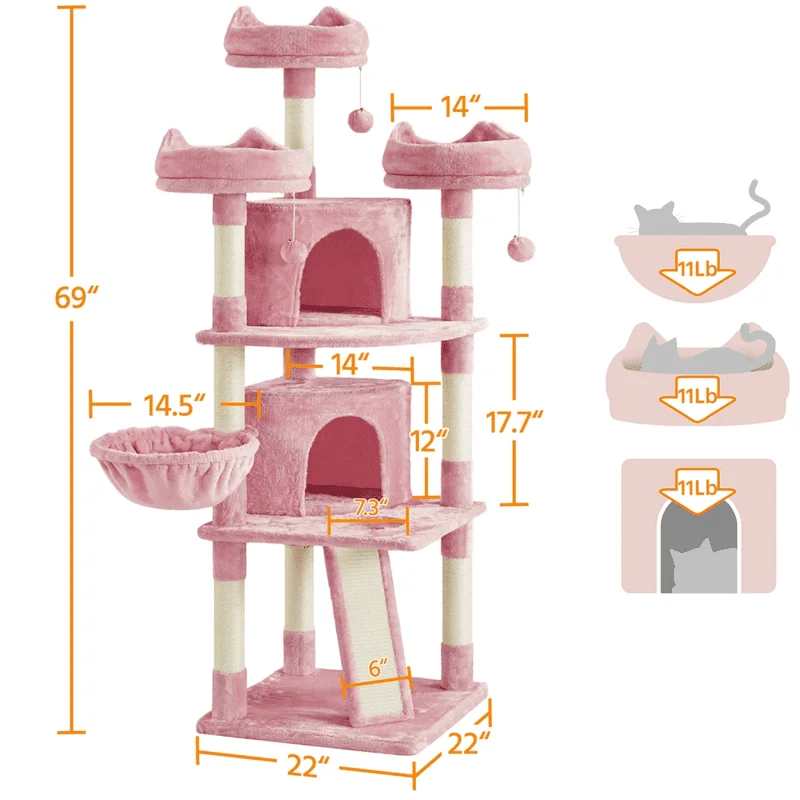 rMdTlUGXFЗдесь вы сможете купить 68.5" Large Multilevel Cat Tree Tower with Condos Platforms Scratching Posts, Pink с бесплатной доставкой до вашего почтового отделения.