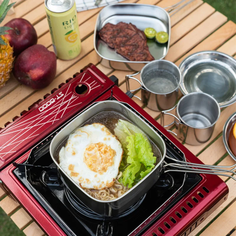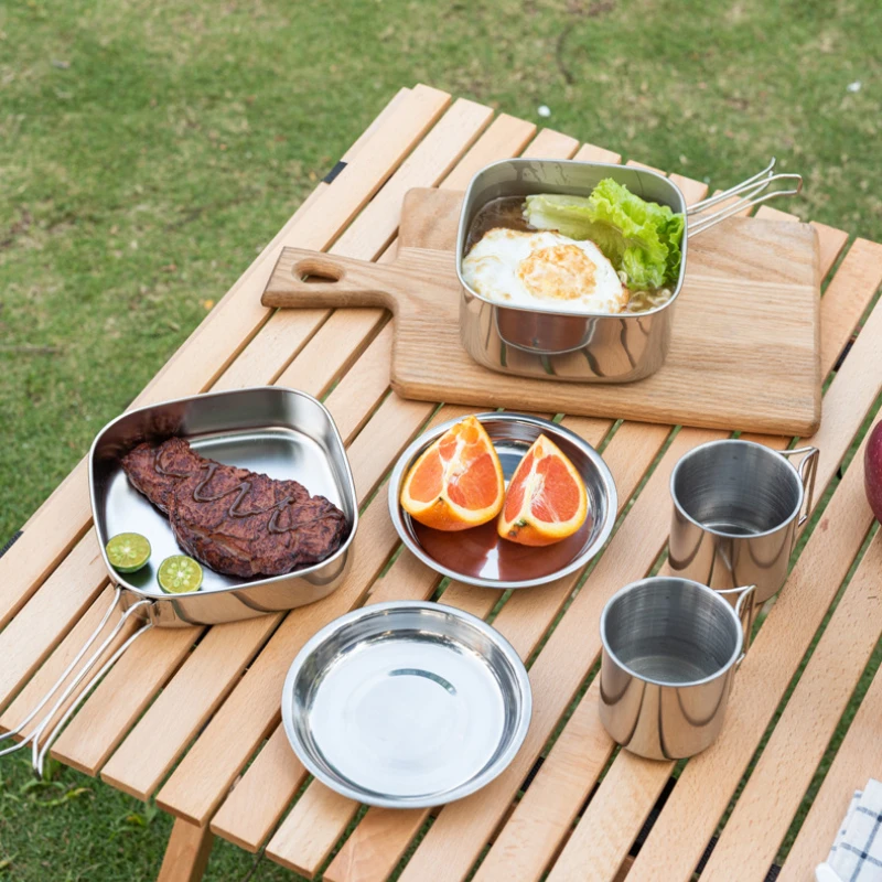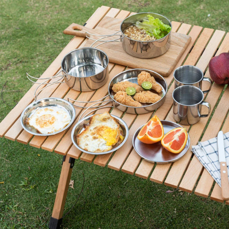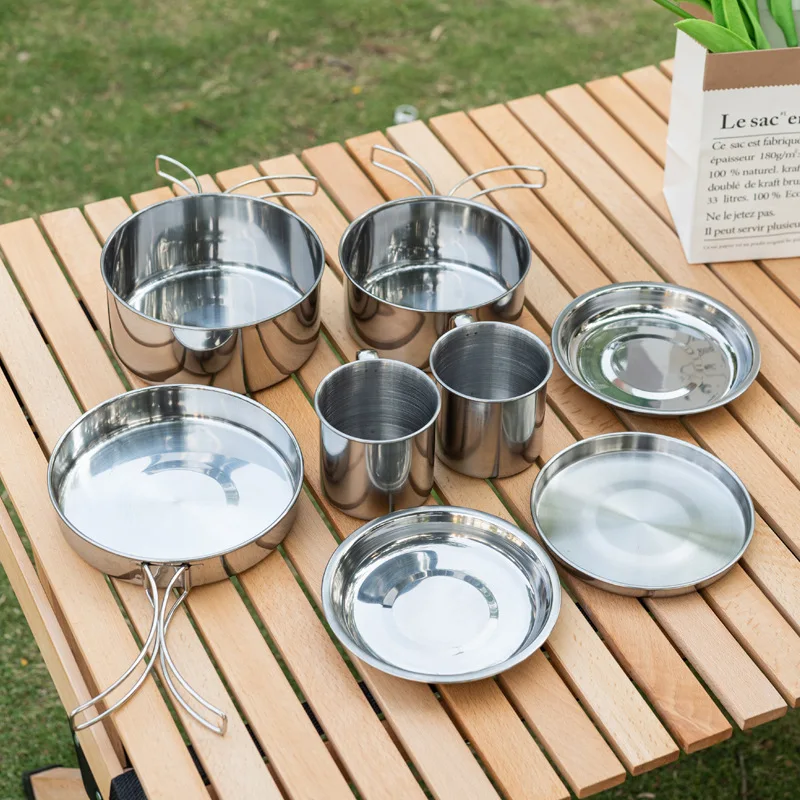 6/8pcs Camping Cookware Set Stainless Steel Compact Campfire Cooking Pots And Pans Rugged Cook Set For Outdoor Hiking Barbecue - Купить с бесплатной доставкой