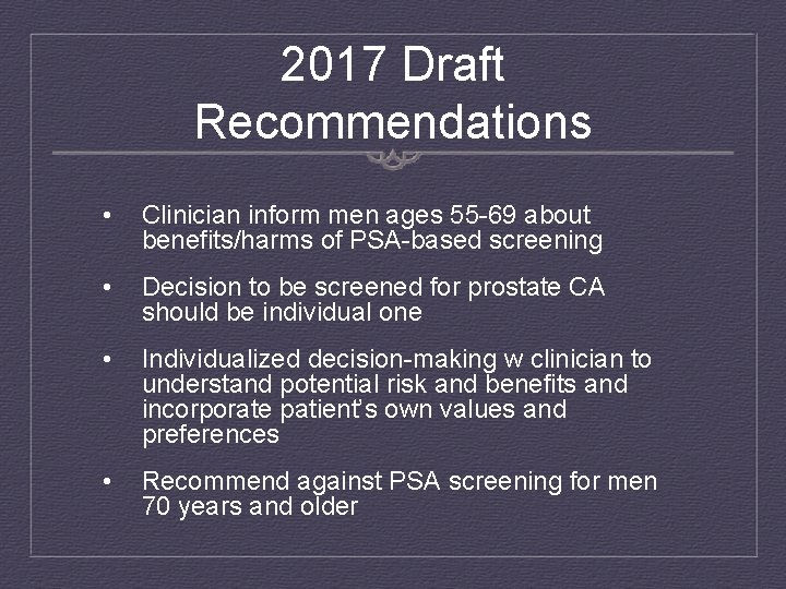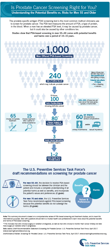 For this reason, the U .S . Preventive Services Task Force now recommends that men aged 55 to 69 decide for themselves whether to undergo a prostate-specific antigen (PSA) test, after talking it . . .