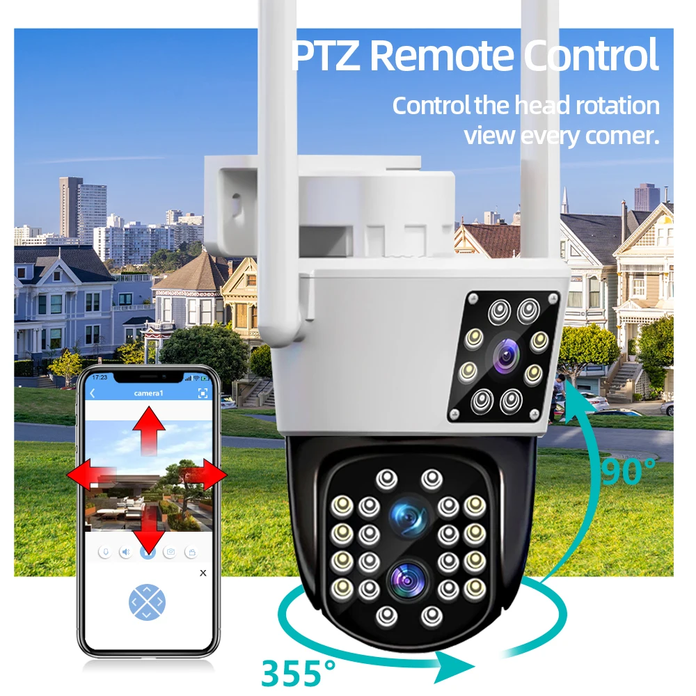 TIHyjRdfYlHere you can buy 6K 12MP Outdoor Wifi Camera Three-Lens Dual-Screens PTZ Camera 10x Zoom Fixed-point Camera Auto Tracking Two Way Audio IPC360 with free delivery to your post office.