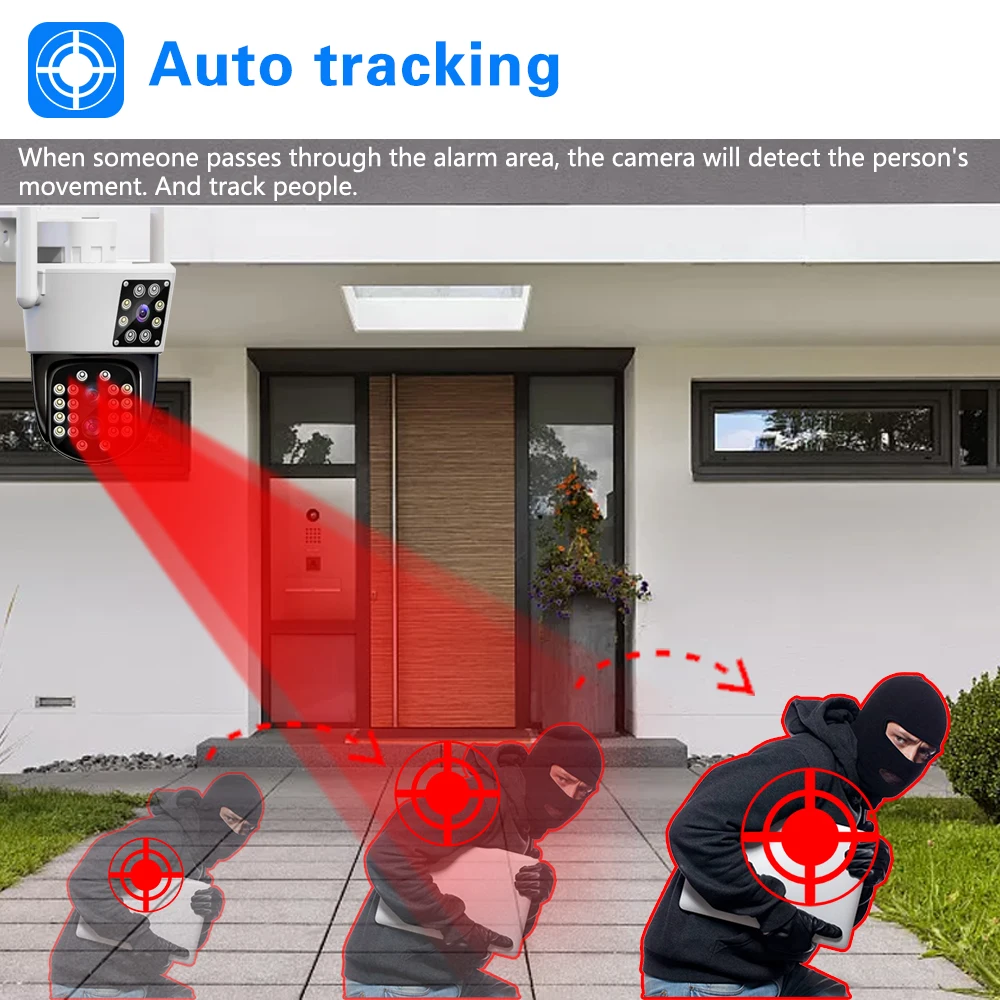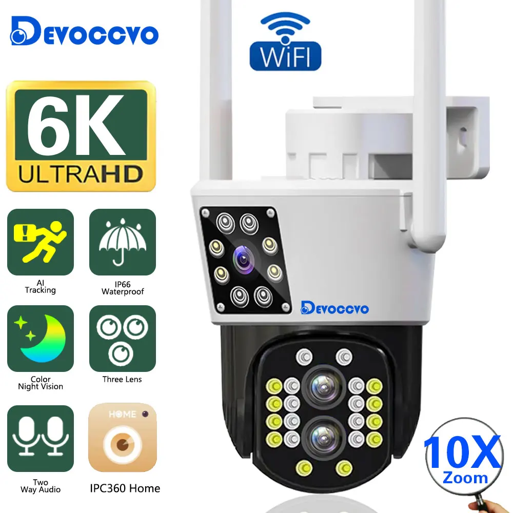 "6K 12MP Outdoor Wifi Camera Three-Lens Dual-Screens PTZ Camera 10x Zoom Fixed-point Camera Auto Tracking Two Way Audio IPC360" * Buy Now With Free Shipping Just For $74