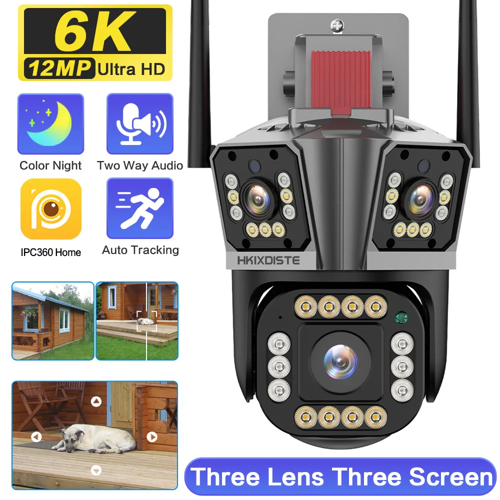 "6K 12MP WiFi Camera Outdoor Color Night Vision PTZ Waterproof Three Lens Three Screen AutoTracking Security CCTV Cameras Audio" * Buy Now With Free Shipping Just For $58