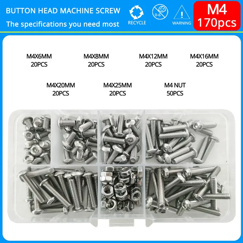 rBVyVZCPRZHere you can buy 6MM-25MM Hex Allen Bolts Nuts Set M4 Stainless Steel Hexagon Round Button Head Metric Thread Screws Fixing Lock Assortment Kit with free delivery to your post office.