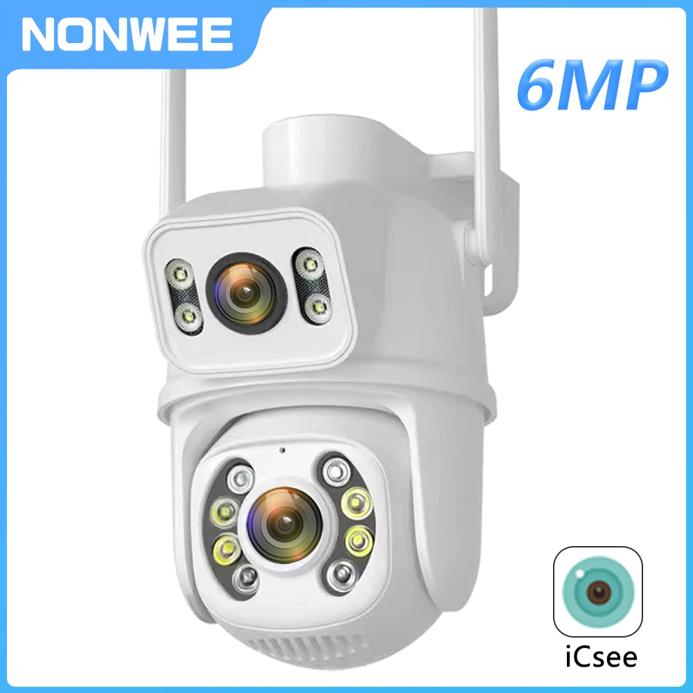 6MP WIFI IP Camera Outdoor PTZ Dual Lens Dual Screen Auto Tracking Security CCTV Surveillance Camera Home Vision ICSEE APP - Купить с бесплатной доставкой