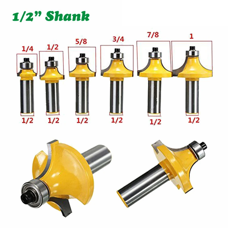 6PC/Set 1/2" 12.7MM Shank Milling Cutter Wood Carving Woodwork Corner Round Over Beading Edging Router C3 Carbide Tipped Tenon - Купить с бесплатной доставкой