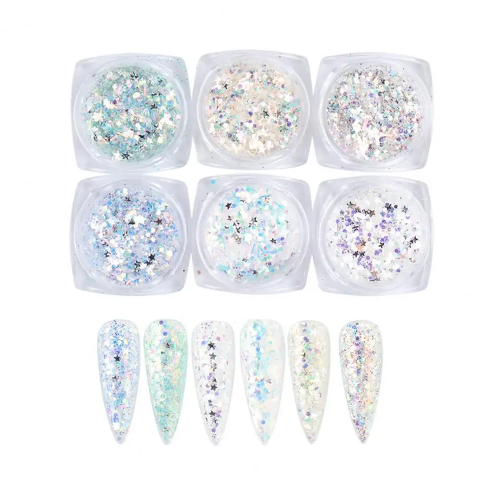 "6Pcs Nail Sequins Useful Nail Design Glitter Powder Lightweight Easy to Use Acrylic Nail Powder" * Buy Now Just For 1$