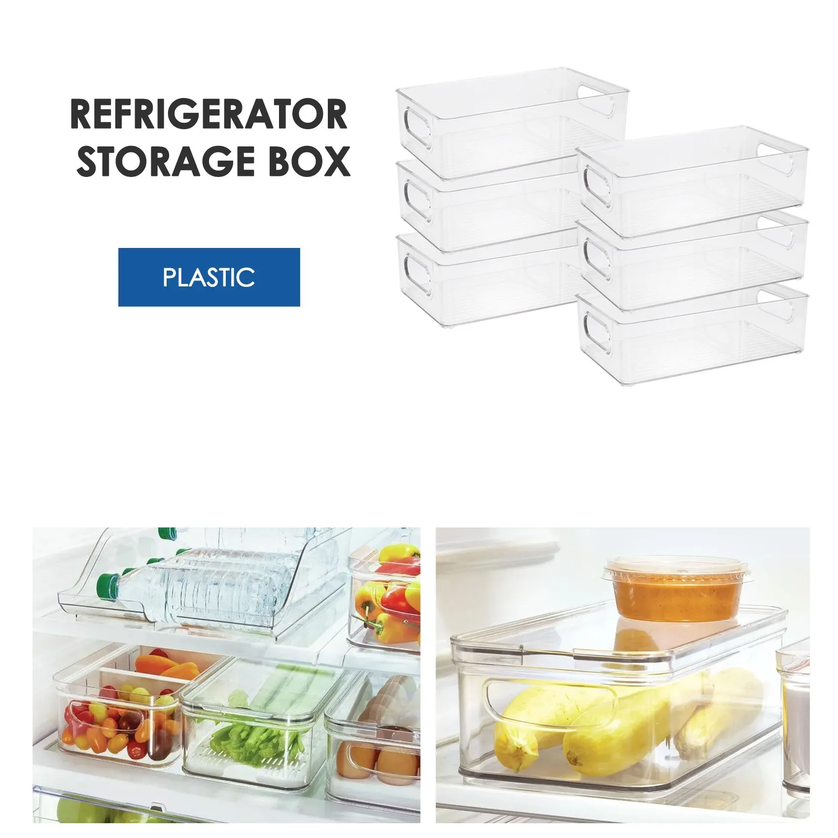 6Pcs Refrigerator Organizer Bins Stackable Fridge Organizers with Cutout Handles Clear Plastic Pantry Food Storage Rack - Купить с бесплатной доставкой