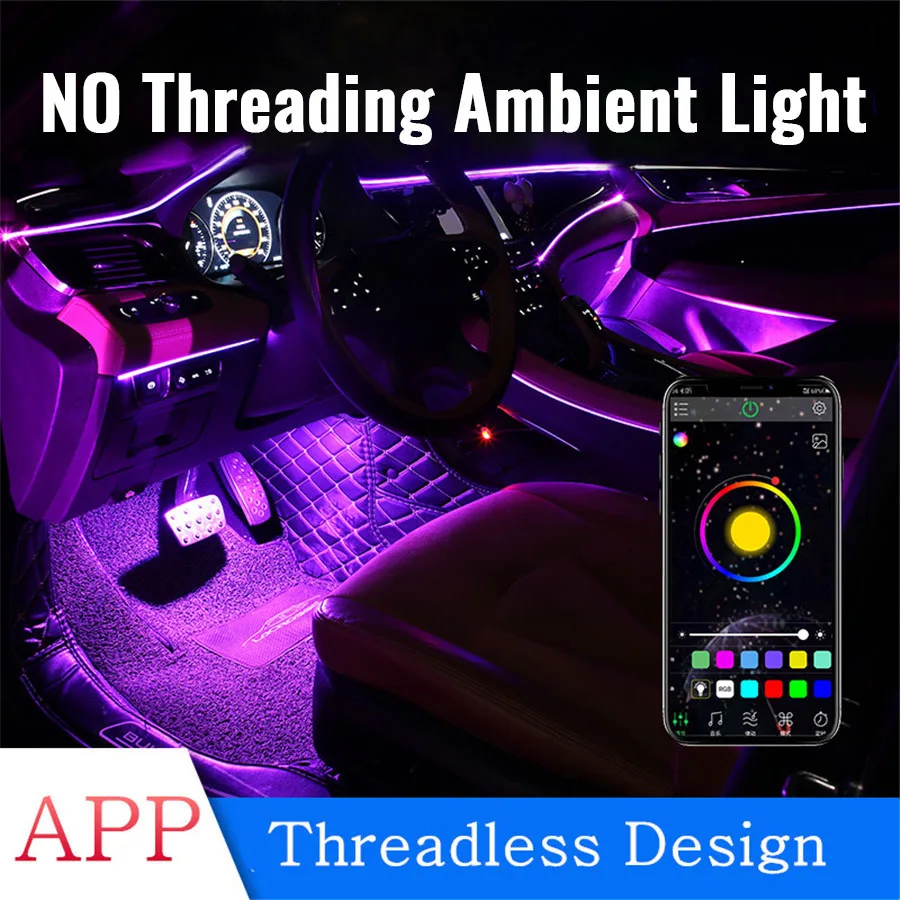 aFVMfBKlkIHere you can buy 6Pcs Wireless NO Threading Car Ambient Light APP Control 64Colors DIY Soft Refit Optic Fiber Band with free delivery to your post office.