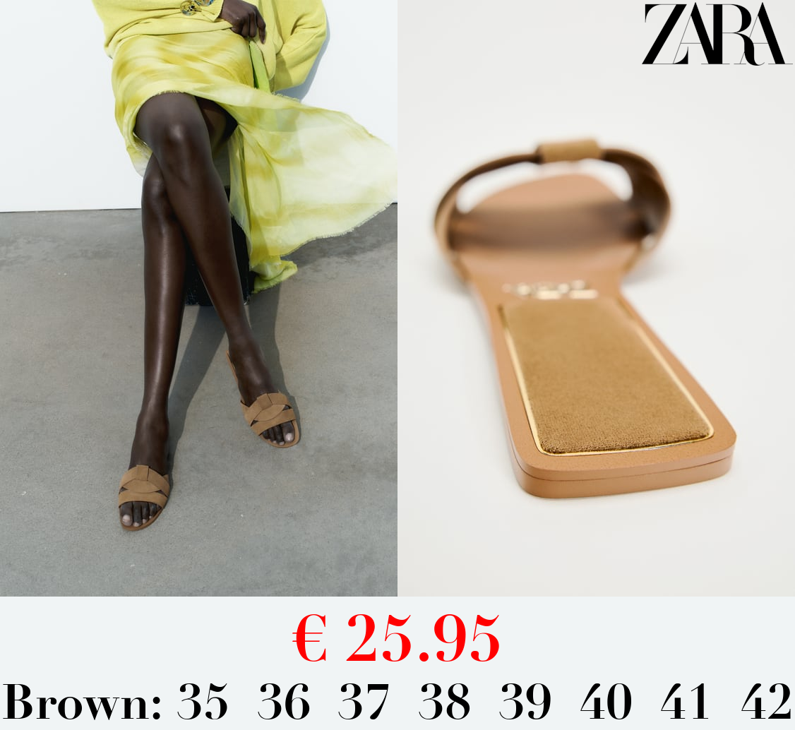 € 25.95 CRISS-CROSS SPLIT LEATHER FLAT SLIDER SANDALS