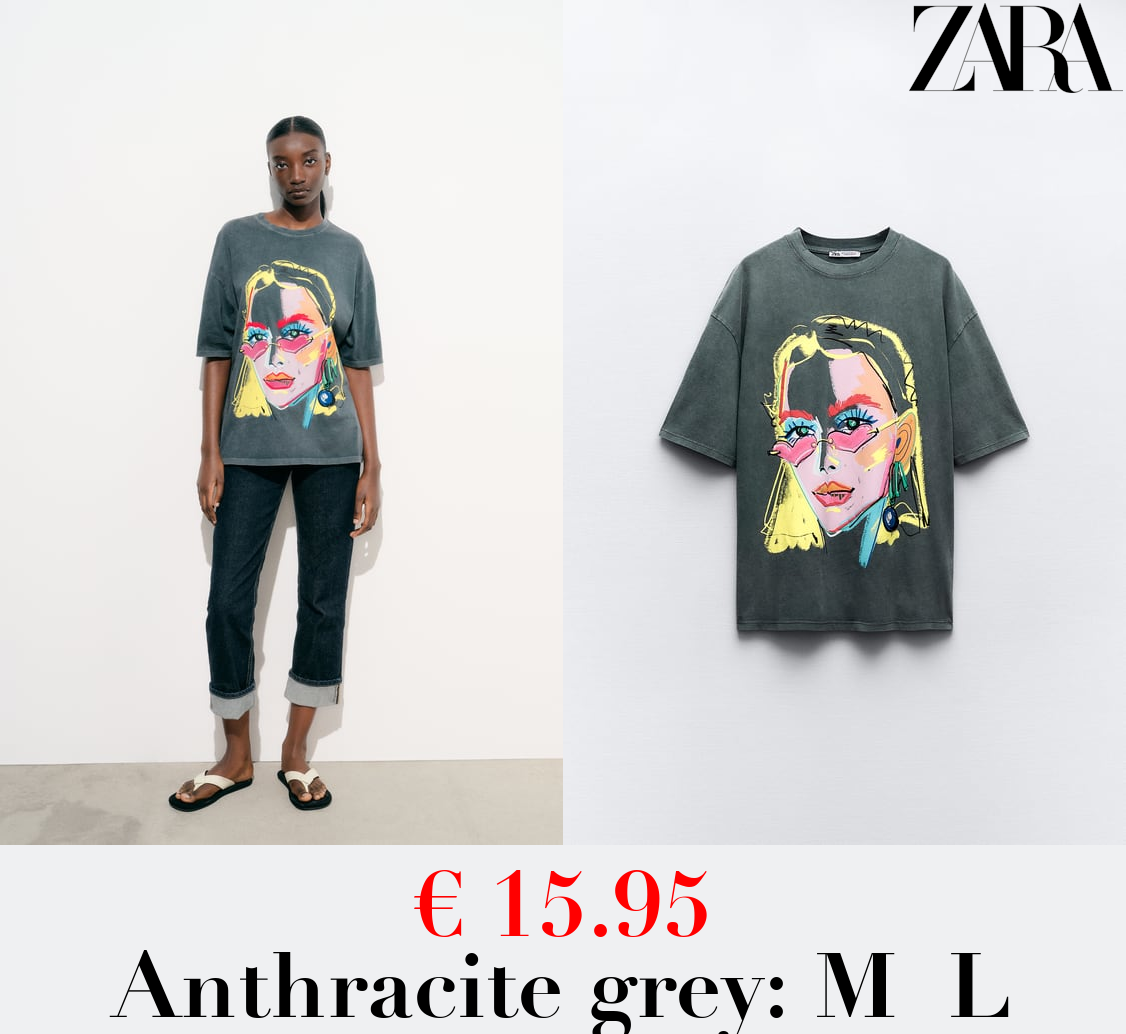 € 15.95 FADED-EFFECT T-SHIRT WITH PRINT