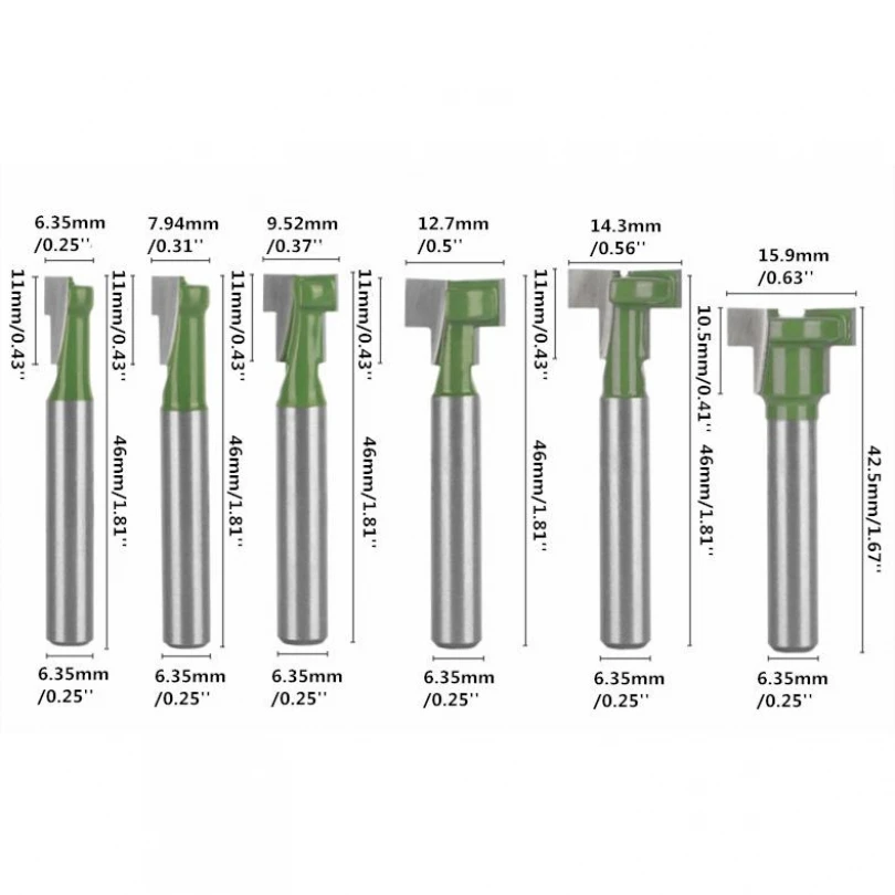6pcs/set 1/4inch Shank Carbide Keyhole Router Bits for Woodworking Carbon Steel T Track Keyhole Router Bit Set - Купить с бесплатной доставкой