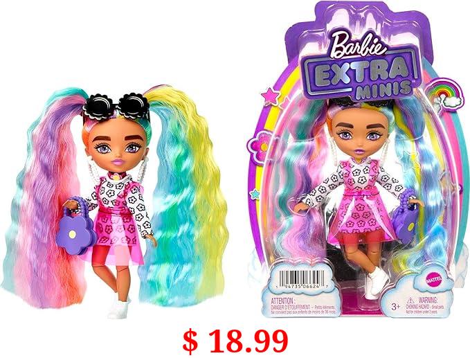 $ 18.99 Barbie Extra Minis Doll #6 (5.5 in) With Rainbow Hair, Wearing Flower Print Dress, with Doll Stand & Accessories Including Sunglasses and Purse, Gift for Kids 3 Years Old & Up