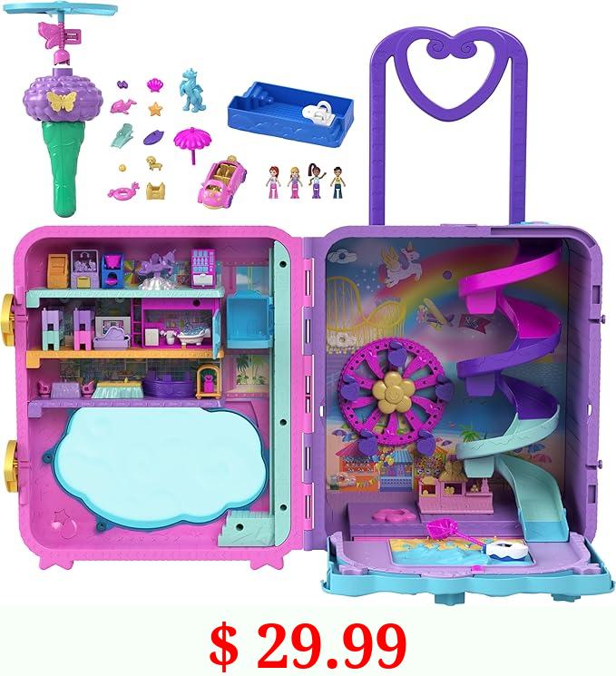 $ 29.99 Polly Pocket Dolls, Playset and Travel Toys, 4 Dolls, 1 Vehicle, 25+ Accessories, Resort Roll Away