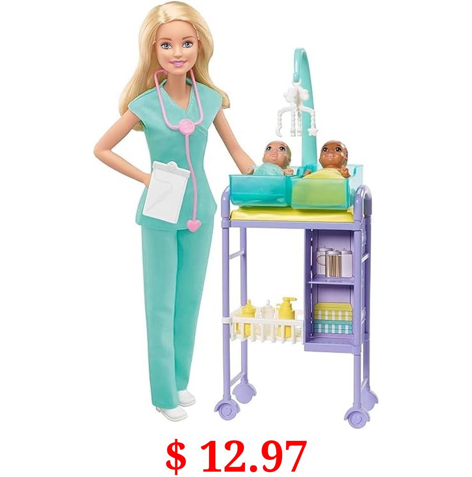 $ 12.97 Barbie Careers Doll & Playset, Baby Doctor Theme with Blonde Fashion Doll, 2 Baby Dolls, Furniture & Accessories