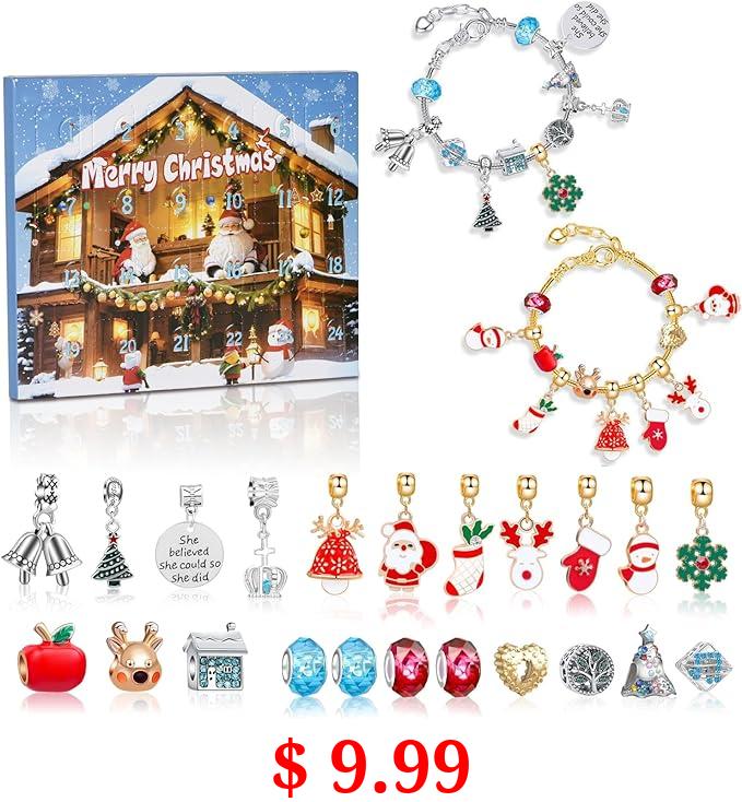 $ 9.99 24 Days DIY Christmas Charm Bracelet Gifts, Girls Bracelet Making Kit, Christmas Advent Calendar 2023,Comes with 2 Bracelet Making Kits and 24 DIY Accessories-Blue