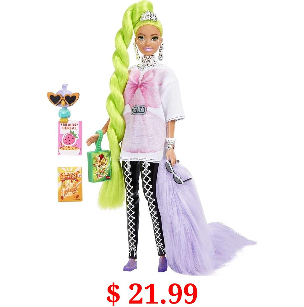 $ 21.99 Barbie Extra Doll and Barbie Accessories with Neon Green Hair, Feather Boa and Pet Parrot