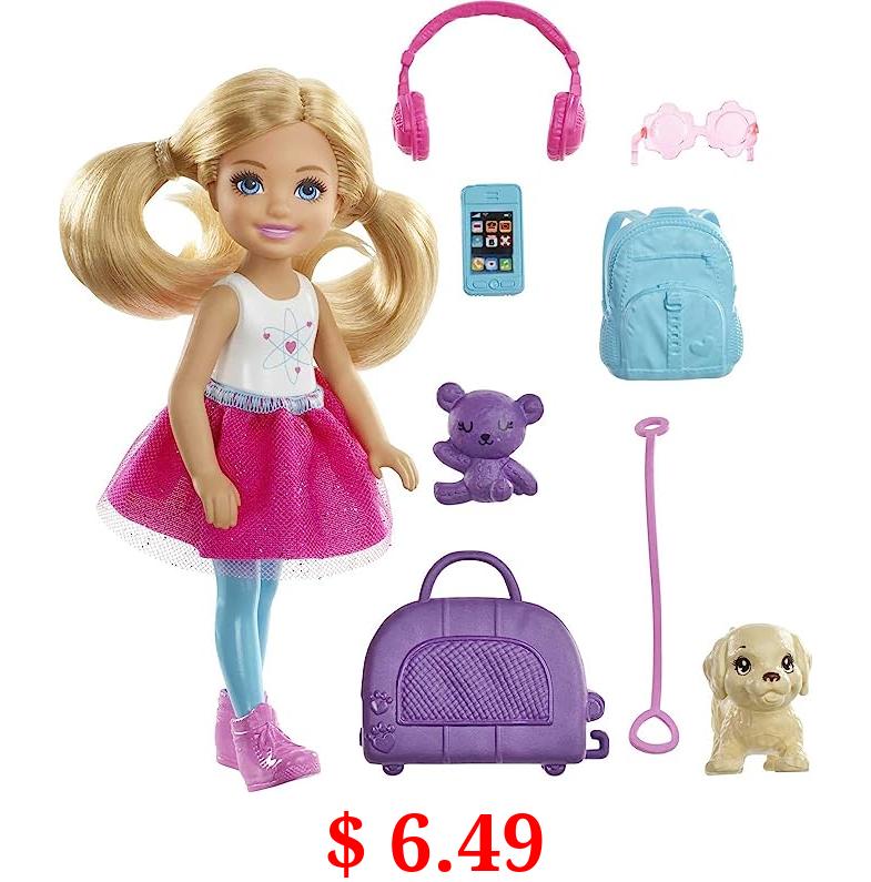 $ 6.49 Barbie Dreamhouse Adventures Doll & Accessories, Travel Set with Blonde Chelsea Small Doll, Puppy, Carrier & Backpack That Opens